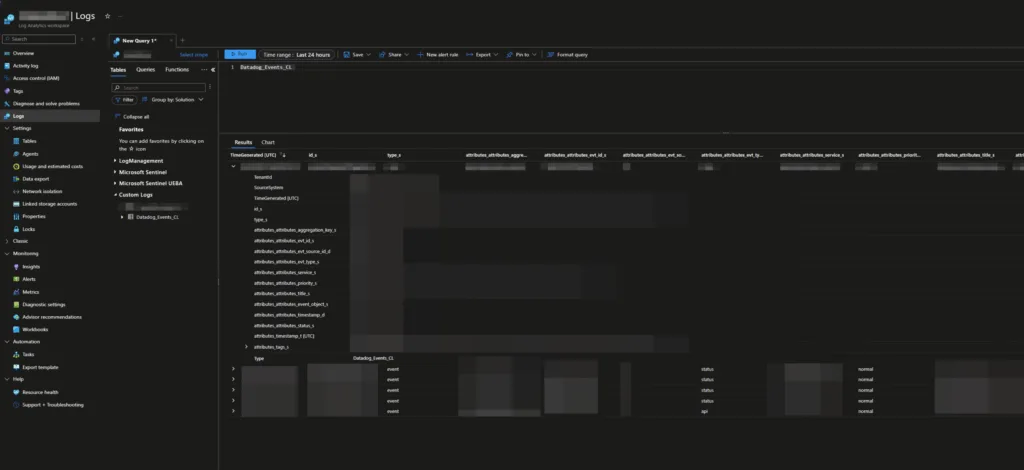 To address this, we developed a custom ingestion workflow that ensures DataDog logs flow into Sentinel without disruption. This approach lets analysts view operational telemetry side-by-side with security data, shortening investigation times and enabling a more complete understanding of potential threats.
